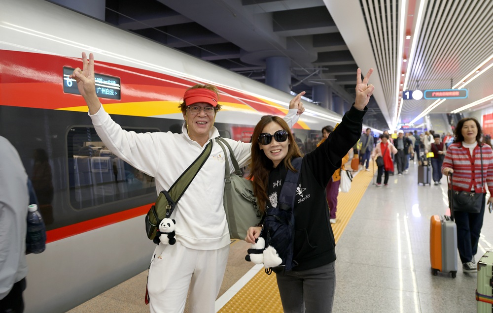 GUANGZHOU (CINA) (XINHUA/ITALPRESS) – Dei passeggeri in procinto di salire sul primo treno della ferrovia ad alta velocità Guangzhou-Zhanjiang posano per una foto alla stazione ferroviaria Baiyun di Guangzhou, nella provincia meridionale cinese del Guangdong, il 22 dicembre 2025. Lunga circa 401 chilometri, la ferrovia è entrata in funzione lunedì. Con una velocità massima progettata di 350 chilometri orari, il tempo di percorrenza tra la stazione ferroviaria Baiyun di Guangzhou e la stazione ferrovaria di Zhanjiang Nord, entrambe nel Guangdong, può essere ridotto a circa un’ora e mezza.