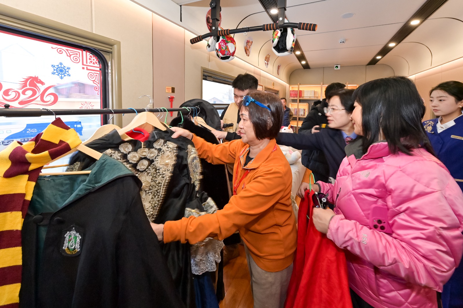 HARBIN (CINA) (XINHUA/ITALPRESS) – Dei passeggeri scelgono i costumi per le fotografie di viaggio a bordo del treno Y783 nella provincia nord-orientale cinese dello Heilongjiang, il 25 gennaio 2026. L’Y783, un treno turistico a tema diretto a Yabuli, che offre servizi fotografici di viaggio, è stato inaugurato domenica a Harbin. Si tratta della prima offerta di questo tipo fatta dall’azienda quest’anno. Gestito dalla China Railway Harbin Group Co., Ltd., il treno consente ai passeggeri di indossare vari costumi e di usufruire di servizi fotografici.
