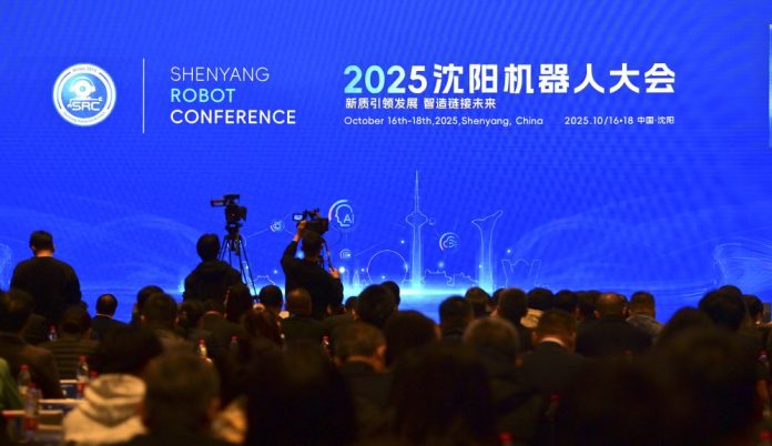 SHENYANG (CINA) (ITALPRESS/XINHUA) – Foto scattata il 17 ottobre 2025 che mostra la cerimonia di apertura della Shenyang Robot Conference 2025 a Shenyang, nella provincia nord-orientale cinese di Liaoning. L’evento di due giorni è iniziato qui venerdì.