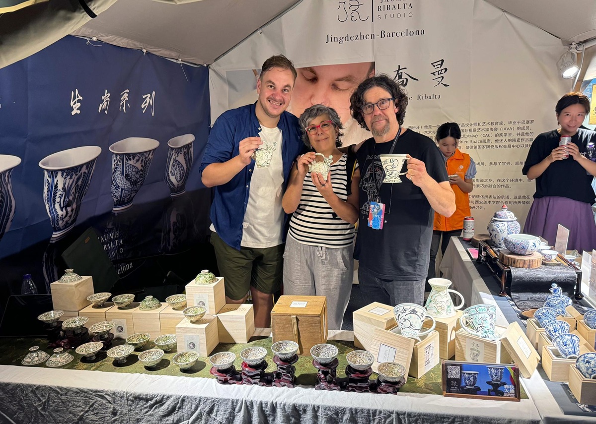 PECHINO (CINA) (XINHUA/ITALPRESS) – Questa foto d’archivio mostra Jaume Ribalta (il primo a sinistra) e i suoi amici mentre espongono delle opere di porcellana in una fiera a Jingdezhen, nella provincia orientale cinese del Jiangxi, nell’ottobre 2024. Jaume Ribalta, un artista spagnolo della porcellana, si è stabilito quattro anni fa in questa città, soprannominata la “capitale cinese della porcellana”. Il suo studio è pieno di elementi cinesi – mobili antichi, un ritratto di Confucio e dei dipinti tradizionali di paesaggi a inchiostro – e ogni dettaglio riflette il profondo apprezzamento di Ribalta per la cultura cinese. Per quanto riguarda le creazioni in porcellana, Ribalta ha saputo fondere con maestria il suo patrimonio spagnolo con l’arte cinese, traendo ispirazione dai motivi ceramici in bianco e nero della sua città natale, Barcellona. Impiega le tradizionali tecniche della porcellana blu e bianca per creare opere distintive che fondono armoniosamente gli stili artistici di Oriente e Occidente. Per Ribalta, la stessa città di Jingdezhen è un vasto patrimonio culturale, dotato di un ambiente creativo aperto, inclusivo e anticonvenzionale che offre terreno fertile alla creazione della porcellana in ogni sua parte. La storia della ceramica di Jingdezhen si estende per oltre 2.000 anni, e il suo ruolo di fornace ufficiale e imperiale ha elevato le sue tecniche di lavorazione della porcellana al livello più elevato della storia. “Ciò che spero di ottenere con il mio lavoro è la creazione un ponte che unisca la cultura cinese e quella spagnola”, ha affermato Ribalta.