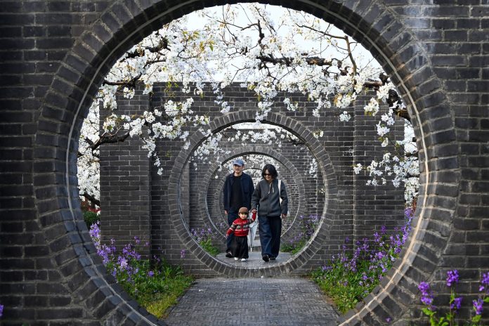 DANGSHAN (CINA) (XINHUA/ITALPRESS) – Alcune persone visitano un frutteto di peri nella contea di Dangshan, nella provincia orientale cinese dell’Anhui, il 30 marzo 2026. Tra i peri della contea, ormai in piena fioritura, si svolgono diverse attività per attirare i turisti.
