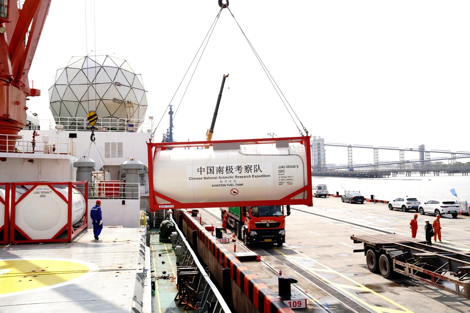 SHANGHAI (CINA) (XINHUA/ITALPRESS) – Degli operatori scaricano container dalla rompighiaccio da ricerca cinese Xuelong a Shanghai, nella Cina orientale, il 9 aprile 2026. La Xuelong, nota anche come Snow Dragon, è rientrata oggi a Shanghai dopo una missione di 160 giorni nell’ambito della 42esima spedizione antartica del Paese.