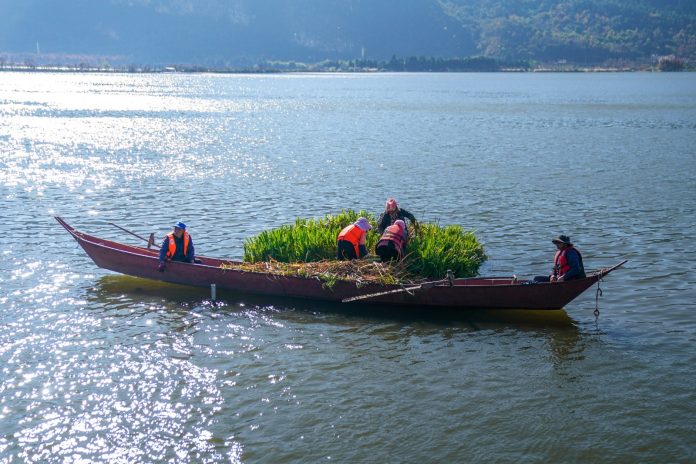 KUNMING (CINA) (XINHUA/ITALPRESS) – Alcuni operatori si prendono cura delle piante su un’isola galleggiante nel lago Dianchi, nella città di Kunming, nella provincia sud-occidentale cinese dello Yunnan, il 22 gennaio 2026. Secondo l’Ufficio di amministrazione del lago, la qualità dell’acqua si mantiene a un livello elevato da otto anni consecutivi.