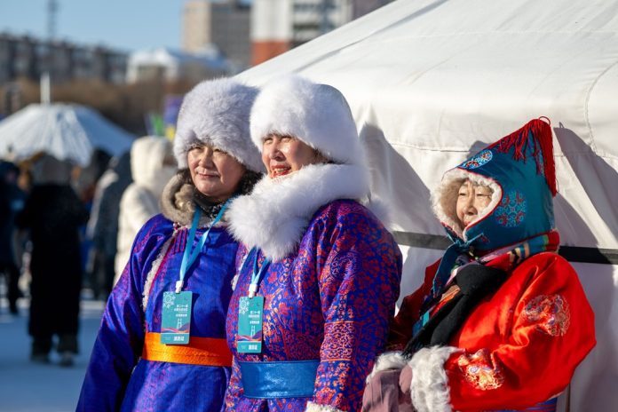HAILAR (CINA) (XINHUA/ITALPRESS) – Alcuni artisti posano per le foto dopo la cerimonia di apertura della 21esima Fiera Nadam del Ghiaccio e della Neve della Regione Autonoma della Mongolia Interna, nel distretto di Hailar della città di Hulun Buir, nel nord della Cina, 21 dicembre 2025. La fiera Nadam è iniziata qui domenica, attirando turisti dalla Cina e dall’estero.