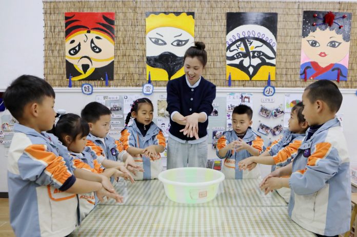 PECHINO (CINA) (XINHUA/ITALPRESS) – Una maestra insegna ai bambini come si lavano correttamente le mani in un asilo nella contea di Shibing, nella provincia sud-occidentale cinese del Guizhou, il 7 aprile 2026. La Giornata mondiale della salute si celebra ogni anno il 7 aprile, data che segna l’anniversario della fondazione dell’Organizzazione mondiale della sanità e richiama l’attenzione sulle più urgenti questioni sanitarie globali.