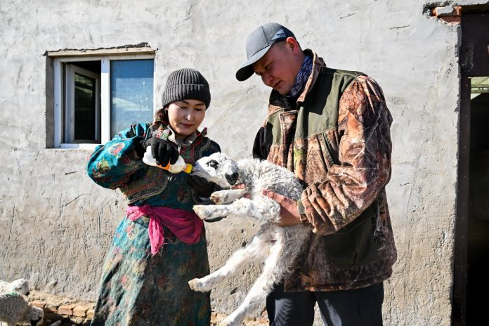 XILINGOL (CINA) (XINHUA/ITALPRESS) – Un pastore (a destra) e sua moglie danno da bere del latte a un agnello nell’East Ujimqin Banner di Xilingol League, nella regione autonoma settentrionale cinese della Mongolia Interna, il 17 marzo 2026. I pastori nelle praterie della zona al momento sono impegnati nell’allevamento degli agnelli, durante la stagione delle nascite primaverili.