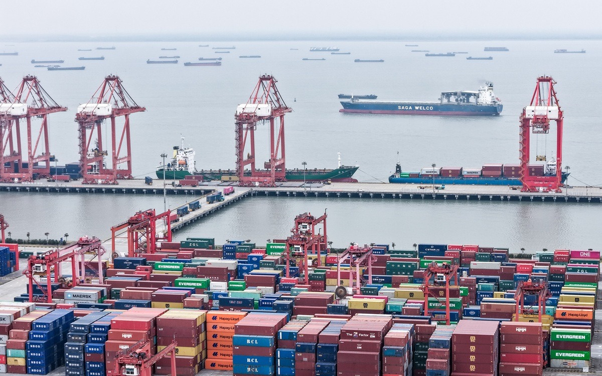 TAICANG (CINA) (XINHUA/ITALPRESS) – Una foto aerea scattata con un drone il 20 marzo 2026 mostra un terminal container del porto di Taicang, nella provincia orientale cinese del Jiangsu. Nel 2025, il porto di Taicang ha mosso 8,736 milioni di TEU di traffico container e 299 milioni di tonnellate di traffico merci. Il numero di navi impegnate nella navigazione internazionale in entrata e in uscita dal porto ha raggiunto 7.957 unità, segnando un aumento del 6% su base annua.