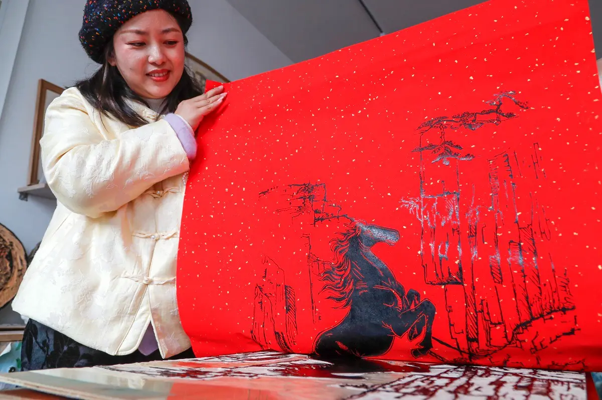 HUANGSHAN (CINA) (XINHUA/ITALPRESS) – Xue Yin, erede della stampa su blocchi di legno di Huizhou, realizza una stampa con tema ispirato all’Anno del cavallo in uno studio nel distretto di Tunxi, città di Huangshan, nella provincia orientale cinese dell’Anhui, il 6 gennaio 2026. La Festa di primavera di quest’anno segna l’inizio dell’Anno del cavallo. Con i suoi vivaci motivi equestri, la stampa su blocchi di legno di Huizhou, ingegnosamente realizzata e patrimonio culturale immateriale di livello provinciale, aggiunge un fascino intramontabile all’autentica estetica cinese.