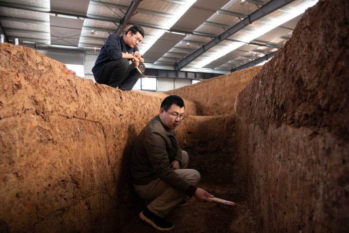 MA’ANSHAN (CINA) (XINHUA/ITALPRESS) – Degli archeologi lavorano nel sito di reperti di Lingjiatan nella contea di Hanshan, a Ma’anshan, nella provincia orientale cinese dell’Anhui, il 13 gennaio 2026. Il sito è un insediamento neolitico risalente a 5.300-5.800 anni fa, con una superficie di circa 1,6 milioni di metri quadrati. Dalla sua scoperta nel 1985, sono stati effettuati 17 scavi a Lingjiatan. Dal sito sono stati rinvenuti oltre 4.000 reperti di grande pregio, tra cui oggetti in giada, manufatti in pietra e ceramiche. Gli archeologi ritengono che Lingjiatan sia antecedente alla cultura Liangzhu, considerata una testimonianza della civiltà cinese risalente a 5.000 anni fa, e che abbia un rapporto di continuità con essa.