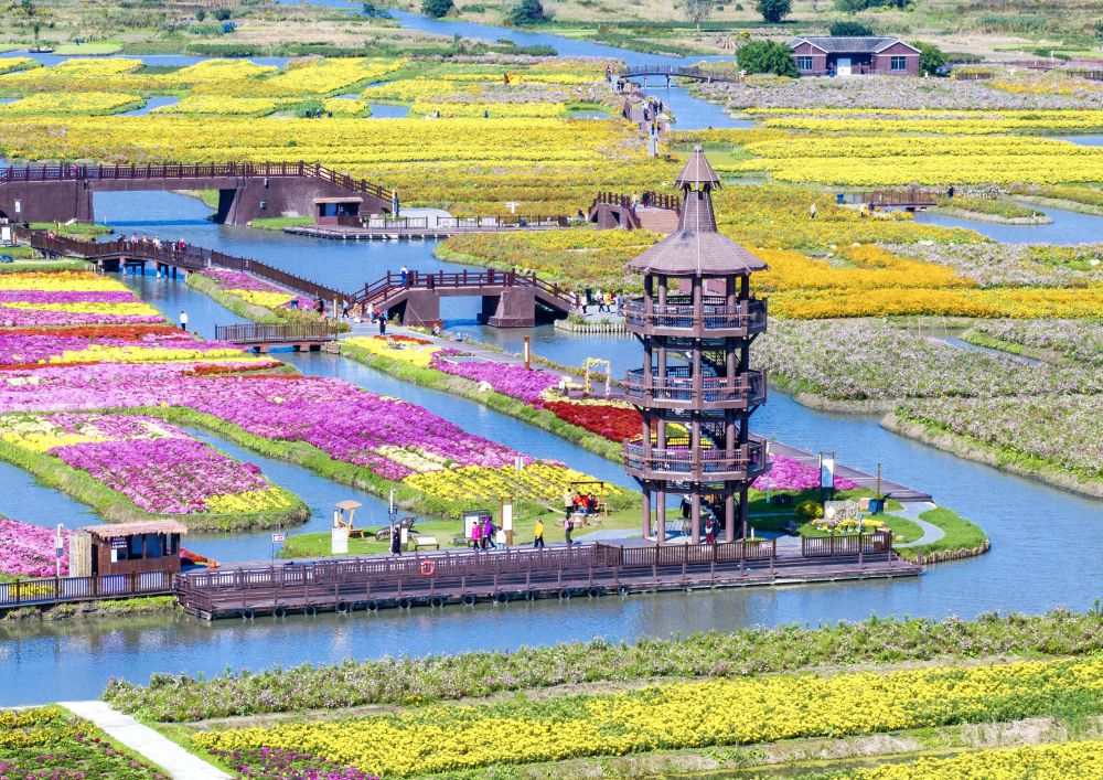 PECHINO (CINA) (ITALPRESS/XINHUA) – Questa foto aerea realizzata con un drone il 23 ottobre 2025 mostra alcune persone che stanno visitando un punto panoramico della città di Xinghua, nella provincia orientale cinese di Jiangsu.