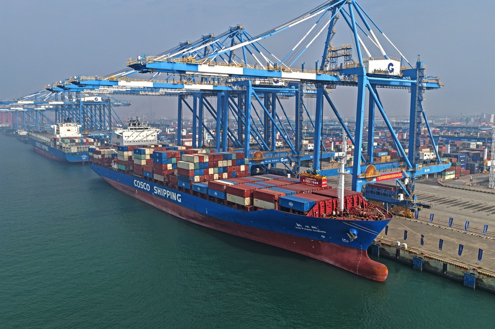 QINZHOU (CINA) (XINHUA/ITALPRESS) – Una foto, scattata da un drone il 30 dicembre 2025, mostra il 10 milionesimo container di unità equivalenti a venti piedi (TEU) di quest’anno, mentre viene sollevato nel porto del Golfo di Beibu, nella regione autonoma del Guangxi Zhuang, nel sud della Cina. Martedì il traffico container del porto ha raggiunto i 10 milioni di TEU quest’anno.