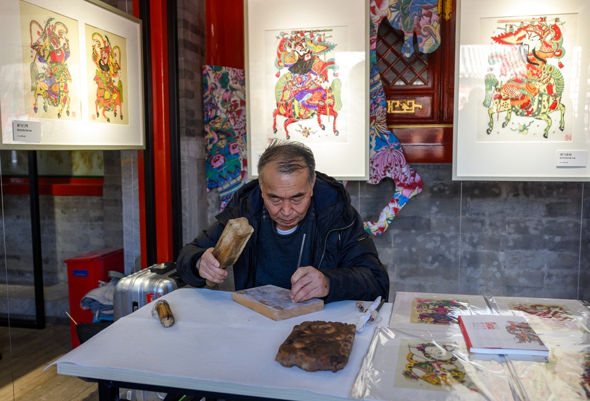 PECHINO (CINA) (XINHUA/ITALPRESS) – Tai Liping, erede rappresentativo delle stampe xilografiche di Capodanno di Fengxiang, un progetto del patrimonio culturale immateriale nazionale, incide matrici xilografiche al Prince Kung’s Palace Museum di Pechino il 4 febbraio 2026. Mercoledì, nella capitale cinese si è aperta la mostra che espone oltre un centinaio di raffinate stampe xilografiche di Capodanno collezionate dal museo.