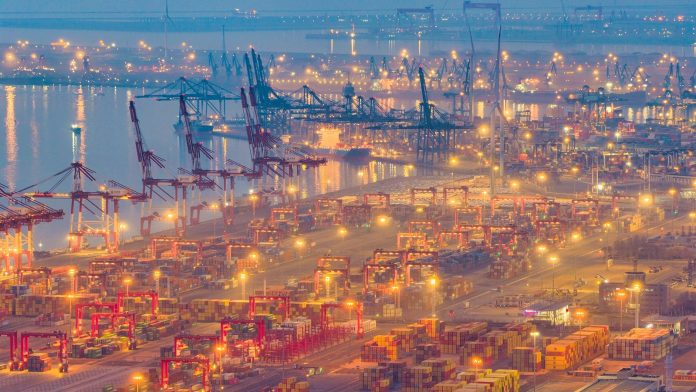 PECHINO (CINA) (XINHUA/ITALPRESS) – Una foto, scattata da un drone il 16 marzo 2026, mostra una veduta del porto di Tianjin nella Binhai New Area, a Tianjin, nella Cina settentrionale. La produzione industriale a valore aggiunto della Cina, un importante indicatore economico, è aumentata del 6,3% su base annua nei primi due mesi del 2026, hanno mostrato ieri i dati dell’Ufficio nazionale di statistica (NBS). Secondo l’NBS, il ritmo è stato più rapido di 1,1 punti percentuali rispetto al livello di dicembre dello scorso anno. Nel solo mese di febbraio, la produzione industriale è cresciuta dello 0,83% rispetto a gennaio.