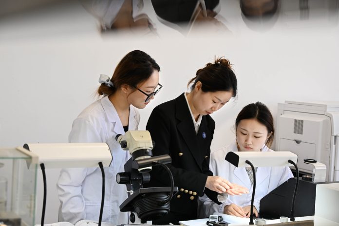 QINGDAO (CINA) (XINHUA/ITALPRESS) – Un’insegnante (al centro) guida gli studenti nel collaudo dei prodotti presso una stazione di controllo qualità del Qingdao Preschool Education College a Qingdao, nella provincia orientale cinese dello Shandong, il 31 marzo 2026. Negli ultimi anni, la scuola di gioielleria del college ha integrato nel proprio curriculum il processo pratico dell’industria della gioielleria, utilizzando basi di formazione all’interno del campus e piattaforme per la pratica produttiva. Durante le lezioni, gli studenti apprendono la teoria della gioielleria e sviluppano competenze pratiche come l’identificazione delle gemme, la lavorazione, il taglio e la lucidatura. Acquisiscono inoltre competenze nella progettazione di gioielli con AIGC, nella modellazione 3D e nel livestreaming per l’e-commerce. Inoltre, partecipano ai processi di produzione e di controllo qualità delle aziende del settore, per padroneggiare le competenze richieste dall’industria.