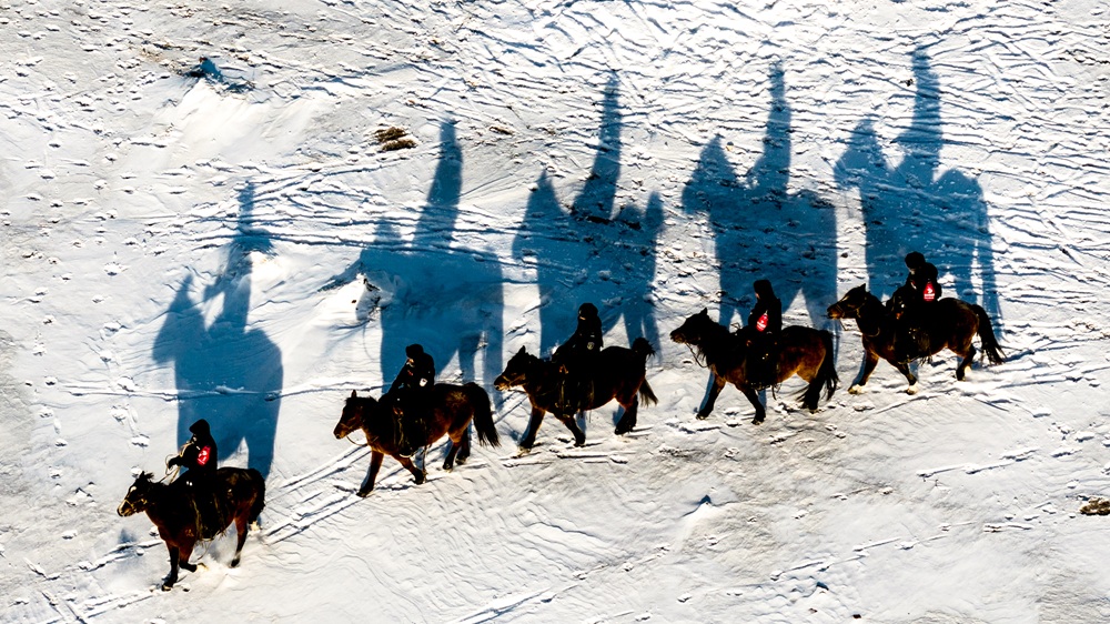 HULUN BUIR (CINA) (XINHUA/ITALPRESS) – Una foto aerea, scattata da un drone il 2 dicembre 2025, mostra degli agenti della squadra di polizia “Gyrfalcon” a cavallo mentre pattugliano la prateria innevata di Chenbarhu Banner a Hulun Buir, nella regione autonoma settentrionale cinese della Mongolia Interna. Immersa nella prateria innevata, una fila di agenti a cavallo pattuglia la zona affrontando raffiche di vento e neve. Svolgono attività di vigilanza e gestione della sicurezza sulla vasta prateria che copre un’area di 18.600 chilometri quadrati.