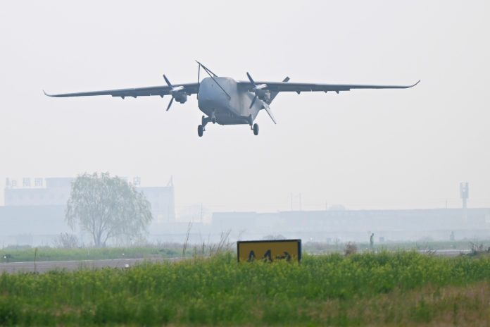 ZHENGZHOU (CINA) (XINHUA/ITALPRESS) – Un velivolo senza pilota (UAV) per il trasporto merci Changying-8 effettua un volo di prova in un aeroporto di Zhengzhou, nella provincia centrale cinese dello Henan, il 31 marzo 2026. L’UAV ha completato con successo il suo volo inaugurale martedì in un aeroporto di Zhengzhou. Il velivolo ad ala fissa costituisce la prima piattaforma UAV per il trasporto merci della Cina nella categoria delle 7 tonnellate validata con test di volo. Il Changying-8 dispone di un vano di carico ultra-ampio con un volume di 18 metri cubi, un peso massimo al decollo di 7 tonnellate e una capacità massima di carico utile di 3,5 tonnellate. Può rispondere a diverse esigenze di carico, comprese forniture convenzionali, merci fresche e della catena del freddo, e attrezzature di emergenza. Il velivolo vanta un’autonomia massima superiore a 3.000 chilometri.