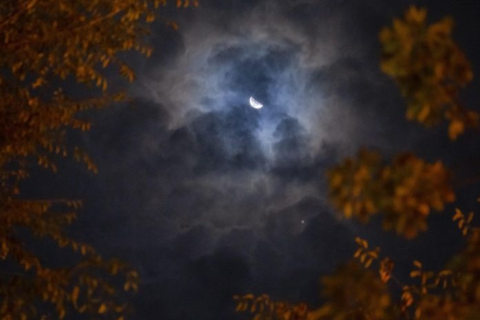 PECHINO (CINA) (ITALPRESS/XINHUA) – Questa foto scattata il 14 ottobre 2025 mostra il pianeta di Giove vicino alla Luna nel cielo sopra la città di Fujin, nella provincia nord-orientale cinese dello Heilongjiang.
