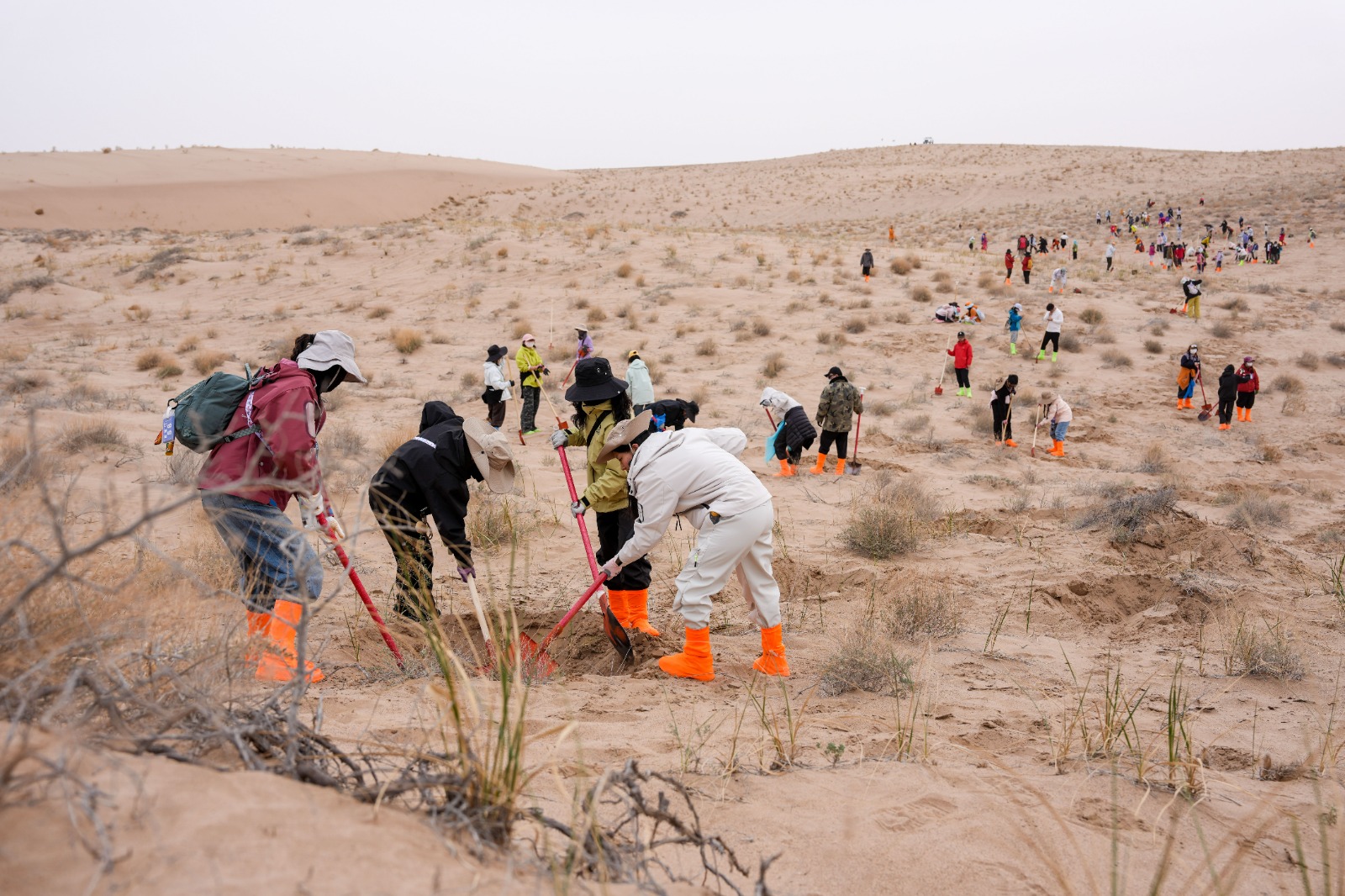 MINQIN (CINA) (XINHUA/ITALPRESS) – Dei volontari scavano fosse per la raccolta dell’acqua presso la base forestale ecologica di interesse pubblico di Zhonglin, contea di Minqin, nella provincia del Gansu, nel nord-ovest della Cina, il 21 aprile 2026. Minqin, stretta tra il terzo e il quarto deserto più grandi della Cina, il Badain Jaran e il Tengger, presenta un 94% di superficie coperta da deserto e terreni desertificati. Per questo è una delle principali aree di origine delle tempeste di sabbia del Paese. Di fronte a pressanti sfide di sopravvivenza e al difficile compito del controllo della desertificazione, la contea ha avviato molteplici campagne di piantumazione di alberi dal 2024. Volontari provenienti da tutta la Cina si sono recati alla base forestale per partecipare ad attività di volontariato per la piantumazione. Dall’inizio di quest’anno, la base ha riunito oltre 30.000 volontari nelle distese sabbiose di Minqin. Finora sono stati piantati oltre un milione di alberelli resistenti alla siccità, come il saxaul, a testimonianza di un impegno verde nelle sabbie gialle.