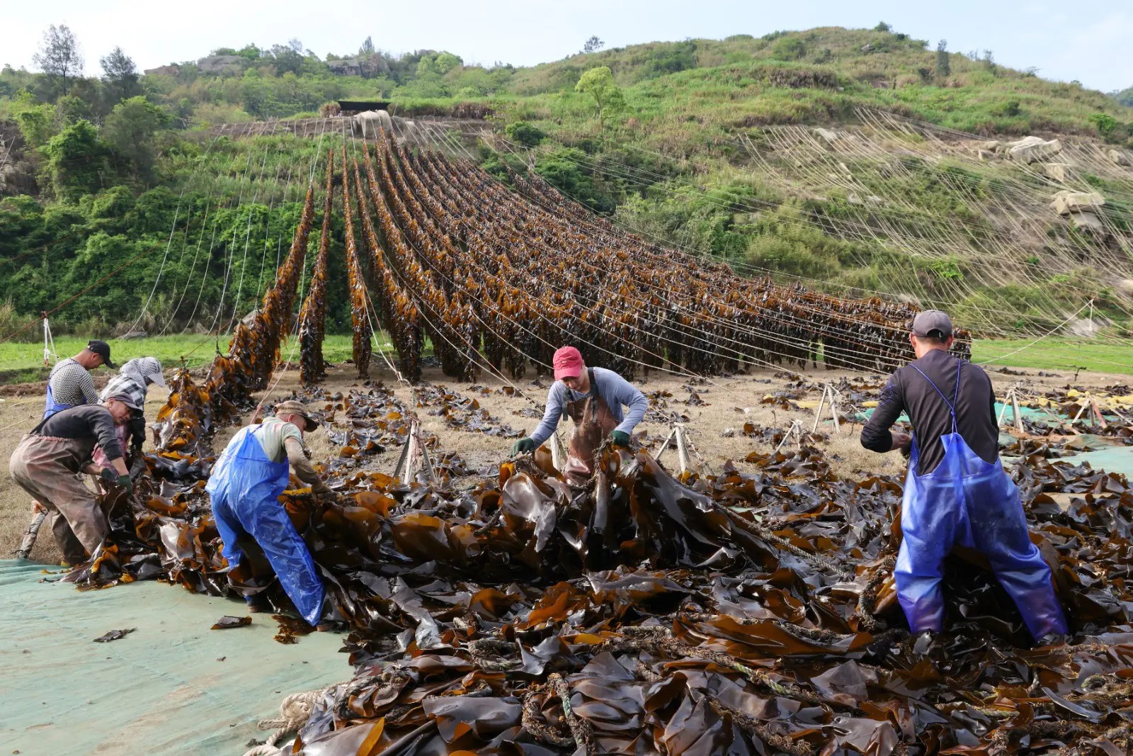 XIAPU (CINA) (XINHUA/ITALPRESS) – Dei pescatori appendono kelp a corde per l’essiccazione nella cittadina di Xiahu, contea di Xiapu della città di Ningde, nella provincia sud-orientale cinese del Fujian, il 25 aprile 2026. Xiapu, una delle principali aree di produzione di kelp in Cina, è entrata nel pieno della stagione del raccolto. Nelle cittadine di Xiahu e Shajiang della contea, il kelp appena raccolto, sospeso sui pendii esposti al sole o disposto a essiccare tra file di pali di bambù sul mare, adorna i paesaggi costieri, formando una scena unica del raccolto. Nel 2025, l’area di coltivazione del kelp a Xiapu ha raggiunto circa 6.613 ettari, con una produzione di 169.000 tonnellate e un valore stimato di produzione pari a 1,84 miliardi di yuan (circa 269 milioni di dollari).