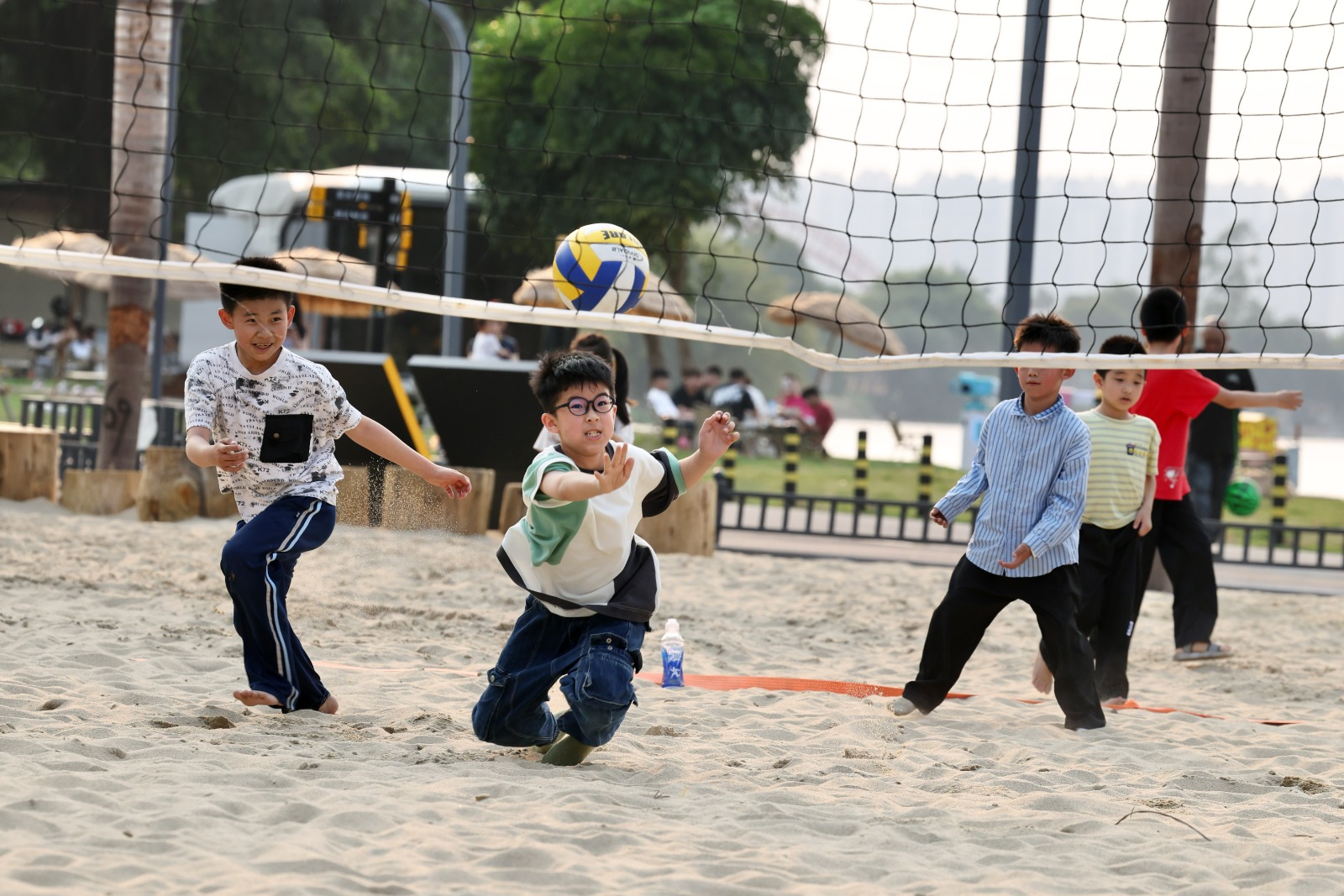 ZHANGZHOU (CINA) (XINHUA/ITALPRESS) – Dei bambini giocano a beach volley nell’area turistica di Long Jiang Years, nella città di Zhangzhou, nella provincia sud-orientale cinese del Fujian, l’11 aprile 2026. Negli ultimi anni, il governo di Zhangzhou ha rafforzato la tutela ecologica e portato avanti la conservazione e il ripristino di aree chiave come il bacino del fiume Jiulong, per preservare cieli azzurri, suoli puliti e acque limpide. Ha inoltre promosso per fasi un progetto di riqualificazione urbana denominato “Long Jiang Years” sulla riva sud del fiume, trasformando distese di marea e terreni incolti in spazi verdi affacciati sull’acqua.