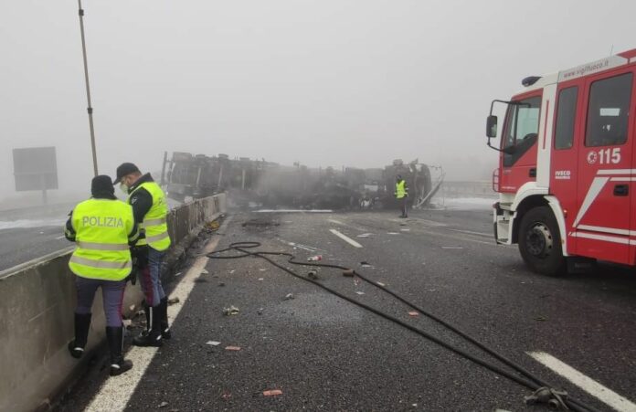 Stando alle prime rilevazioni, la cisterna si è scontrata con il new jersey che separa le carreggiate, forse a causa della fitta nebbia sulla bassa padana. La scarsa visibilità ha, fra l’altro, reso difficili anche gli interventi di soccorso degli elicotteri. Non ci sarebbero altri veicoli coinvolti nello scontro, da quanto si apprende dalla Polizia stradale.