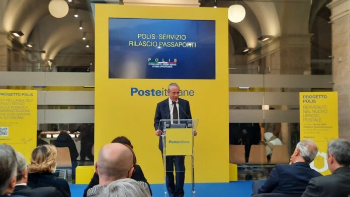 ROMA (ITALPRESS) – Il progetto Polis di Poste Italiane procede a passi sempre più spediti, con il lancio del nuovo servizio di richiesta e rinnovo passaporti negli uffici postali dei Comuni al di sotto di 15 mila abitanti. La novità, che parte in via sperimentale in provincia di Bologna, a San Pietro in Casale e Toscanella (frazione di Dozza), in vista della progressiva estensione a tutto il territorio nazionale, è stata presentata all’ufficio postale di piazza San Silvestro a Roma alla presenza del ministro dell’Interno, Matteo Piantedosi, della presidente di Poste Italiane, Silvia Maria Rovere, dell’Ad di Poste Italiane, Matteo Del Fante, e del direttore generale, Giuseppe Lasco.