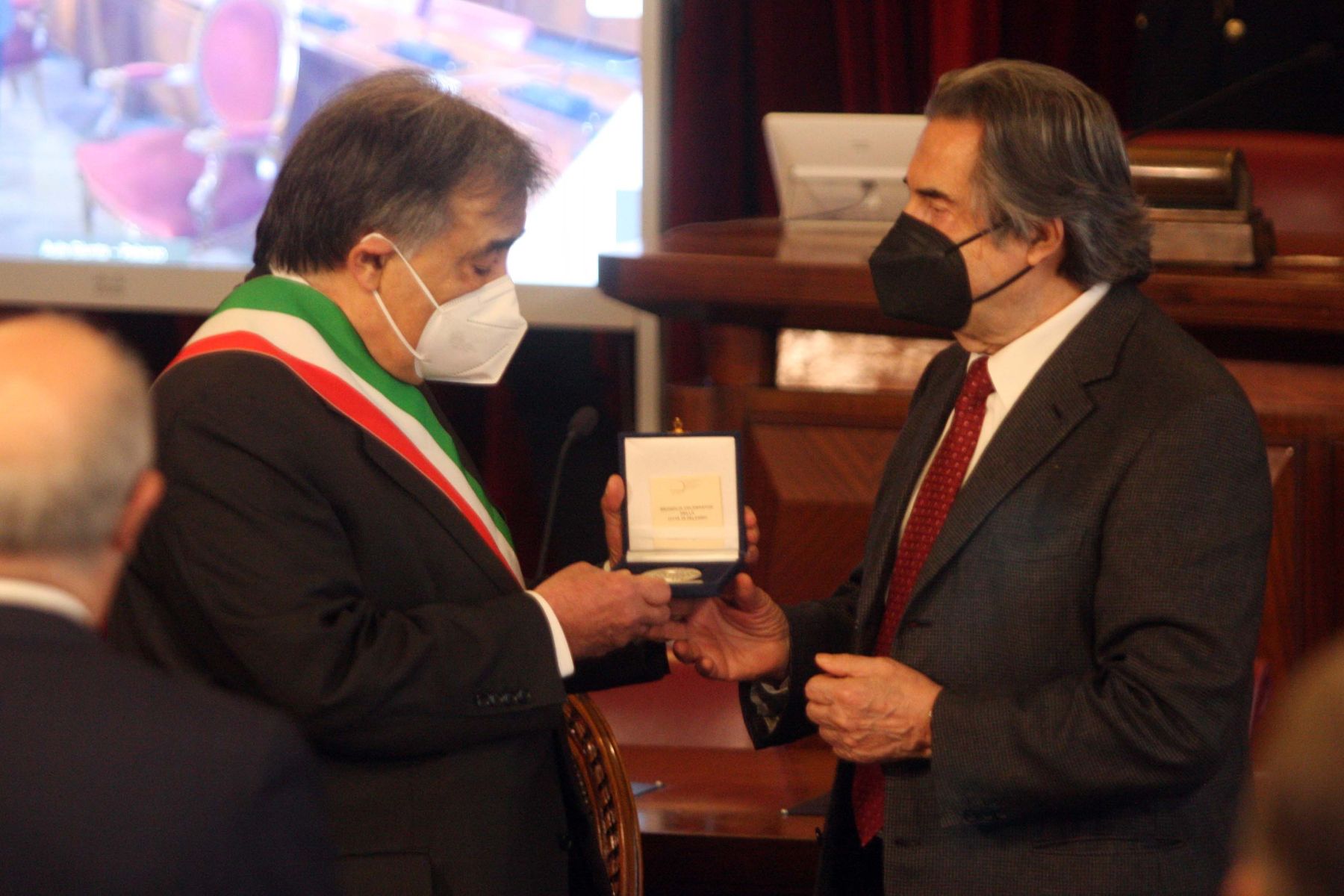 PALERMO (ITALPRESS) – Il maestro Riccardo Muti è da oggi un nuovo cittadino onorario di Palermo. Il riconoscimento gli è stato conferito dal sindaco Leoluca Orlando nel corso di una cerimonia che si è svolta a Palazzo delle Aquile, “per lo straordinario contributo a favore della diffusione della cultura in Italia e nel mondo e per l’esperienza umana e artistica, messaggera degli ideali di pace e comunione tra popoli, fratellanza e condivisione, attraverso il linguaggio universale della musica”. Alla cerimonia, cui ha partecipato in video collegamento il ministro alla Cultura, Dario Franceschini, hanno preso parte anche l’assessore alle CulturE, Mario Zito, il sovrintendente e il direttore del Teatro Massimo, Francesco Giambrone e Marco Betta, e il prefetto di Palermo, Giuseppe Forlani.