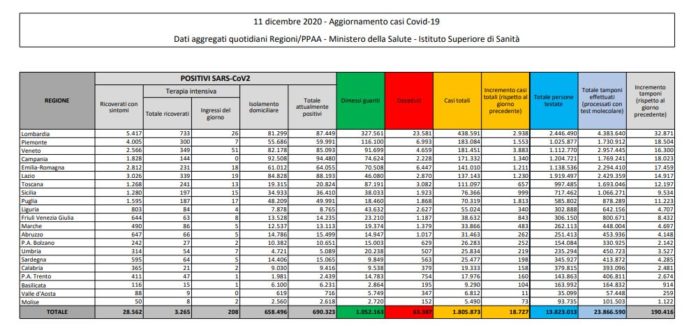 L’incremento dei casi è anche da attribuire all’aumento dei tamponi: 190.461 in crescita rispetto ai 171.586 processati ieri, con un rapporto tamponi/positivi che si conferma sotto il 10%, esattamente al 9,8. Non si arresta il trend positivo con la minore pressione sugli ospedali. I pazienti nei reparti ordinari sono 28.562 (-526), mentre le terapie intensive si riducono di 26 unità toccando il numero complessivo di 3.265 anche se si registrano 208 nuovi ingressi (comunque in flessione rispetto a ieri). Le persone in isolamento domiciliare sono 658.496. Sul fronte delle regioni il Veneto continua ad essere la regione con più nuovi contagi (3.883), seguita da Lombardia (2.938) e Piemonte (1.553). La regione con il minor aumento è la Valle d’Aosta (11).