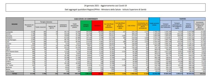 Aumentano rispetto a ieri i pazienti ricoverati, che oggi sono 21.424, ovvero 115 in più. Nelle terapie intensive ci sono 2.421 pazienti, con un incremento complessivo di 21 unità nelle ultime 24 ore e con 150 nuovi ingressi oggi. Le persone in isolamento domiciliare sono 467.785.