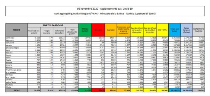A livello regionale, la Lombardia continua ad essere maglia nera con 9.934 casi, seguita da Piemonte con 4.878 casi e dalla Campania con 4.508. Fanalino di coda il Molise con 76 nuovi positivi. Lombardia, Piemonte e Campania sono anche le regioni con il maggior numero di ricoverati, con l’Emilia Romagna a tallonarle. Terapie intensive più affollate in Lombardia (570) e Piemonte (268), seguite dal Lazio (264).