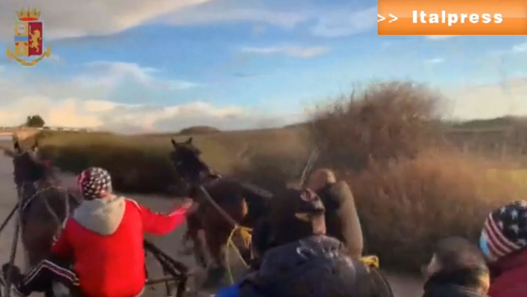 AGRIGENTO (ITALPRESS) – Gli agenti della polizia di Stato di Agrigento hanno bloccato una corsa clandestina di cavalli, in contrada Ciccobriglio, a Naro. I poliziotti della Squadra mobile, nel tratto di una locale strada provinciale, hanno sorpreso e circondato un gruppo di persone che stava partecipando ad una gara tra due cavalli con calesse, a cui assistevano numerosi soggetti, anche minorenni. Al vaglio degli inquirenti la posizione di 38 persone che, una volta identificate, sono state denunciate. Le ipotesi di reato sono di violazione del divieto di organizzare competizioni tra animali e di scommesse clandestine.