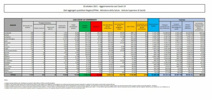 ROMA (ITALPRESS) – In crescita i casi Covid in Italia, secondo i dati del bollettino del ministero della Salute. I nuovi positivi nelle ultime 24 ore sono 3.702, in aumento rispetto ai 2.697 fatti registrare ieri. I tamponi processati sono stati 485.613, dato che fa salire il tasso di positività allo 0,76%. Sono 33 i deceduti, mentre i guariti sono 4.544. Tornano a crescere i ricoveri: nei reparti ordinari il numero si incrementa di 41 unità toccando quota 2.464; nelle terapie intensive è invece stabile a 355 con 25 nuovi ingressi. In isolamento domiciliare vi sono 70.849 persone. Dal punto di vista del contagio nelle regioni, la prima per numeri di nuovi positivi è la Lombardia (457), seguita da Veneto (455) e Campania (406).