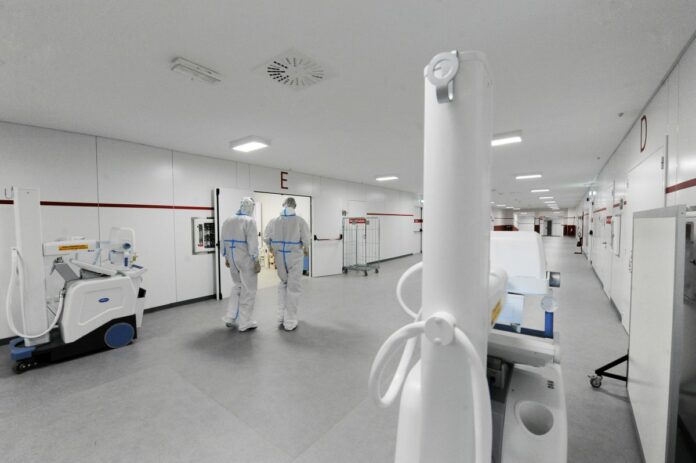 COVID- HOSPITAL, REPARTO DI TERAPIA INTENSIVA, TUTA PROTETTIVA, MEDICO, INFERMIERE, OPERATORI SANITARI, ABBIGLIAMENTO PROTETTIVO, OSPEDALE