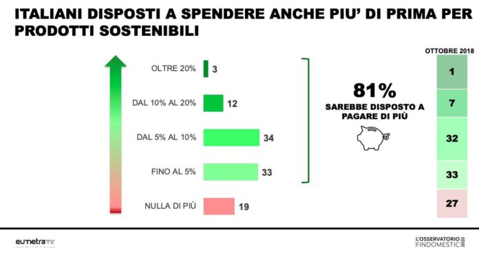 ROMA (ITALPRESS) – La coscienza ambientale degli italiani è sempre più forte, tanto che rispetto a due anni fa l’81% degli intervistati – erano il 73% a ottobre 2018 – è disposto a spendere più di prima per acquistare prodotti o servizi rispettosi dell’ambiente. Il dato emerge dal focus “Sostenibilità” dell’Osservatorio Mensile Findomestic di agosto 2020, realizzato in collaborazione con Eumetra in occasione del lancio del “Prestito Green”, il prestito personale per piccole e grandi spese che promuovono l’energia rinnovabile, la mobilità sostenibile e l’efficientamento energetico della casa.