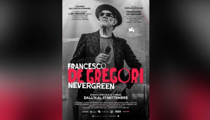 ROMA (ITALPRESS) – Il docufilm “Francesco De Gregori. Nevergreen” di Stefano Pistolini, prodotto da OUR FILMS, società del gruppo Mediawan, Friends TV, Darallouche e Caravan, verrà presentato in anteprima alla 82. Mostra Internazionale d’Arte Cinematografica di Venezia nella sezione Fuori Concorso – Speciale Cinema & Musica. Il film arriverà poi al cinema come evento speciale per Nexo Studios dall’11 al 17 settembre.