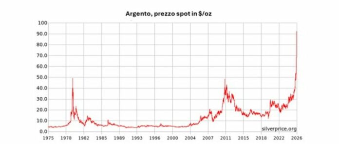 ROMA (ITALPRESS) – Il 2025 è stato un anno particolarmente vivace sui mercati, con importanti movimenti che hanno caratterizzato listini globali, valute e commodities. Sul finire dell’anno, è stata proprio una commodity a destare grande attenzione: l’argento. Tra gennaio 2025 e lo stesso mese del 2026 il suo valore è cresciuto di oltre il 190%, un rally di maggiori dimensioni persino rispetto a quello dell’oro – altra commodity centrale nel 2025 (+70% su 12 mesi) – e molto più accentuato nell’ultima parte dell’anno.