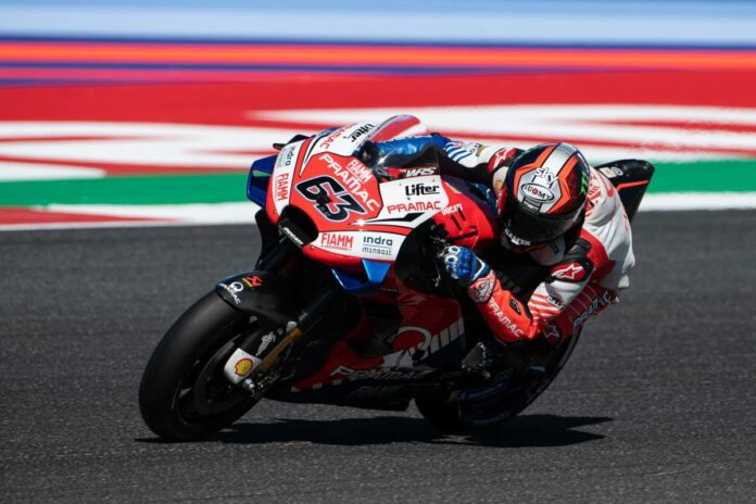 MISANO ADRIATICO (ITALPRESS) – Seconda pole position consecutiva per Francesco Bagnaia. Dopo Aragon, l’italiano della Ducati si ripete nel Gran Premio di San Marino con un giro super in 1’31″065 ed è davanti al compagno di squadra Jack Miller. Completa la prima fila sul circuito di Misano il leader del Mondiale Fabio Quartararo, ma il francese scivola dalla sua Yamaha nell’ultimo tentativo per provare a conquistare la pole. La grande giornata per Ducati è certificata anche dal quarto e quinto posto di Jorge Martin e Johann Zarco, Marc Marquez è settimo mentre Maverick Vinales chiude la top-10 in sella all’Aprilia. In fondo alla griglia di partenza le Petronas di Valentino Rossi e del rientrante Andrea Dovizioso, eliminati in Q1.