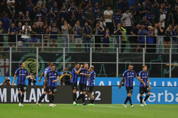 MILANO (ITALPRESS) – Un’Inter orfana di Lukaku approfitta del mezzo passo falso del Milan e supera in classifica i cugini grazie al 3-1 firmato ai danni di una Cremonese che esce comunque da San Siro a testa alta. Una sfida decisa dalle reti di Correa, Barella e Lautaro, con il centrocampista della nazionale azzurra dominante per tutti i 90 minuti. I padroni di casa sfiorano subito il vantaggio al 2′, quando Dimarco calcia una punizione che esce di un soffio alla sinistra dell’ex di turno Radu. Dieci minuti dopo arriva l’1-0. I grigiorossi concedono un ingenuo contropiede da corner a favore, con Barella che recupera palla e la porta rapidamente a ridosso dell’area opposta. La sfera arriva a Dzeko che calcia con il destro trovando la parata di Radu, ma sulla respinta è Correa il più sveglio di tutti nel ribattere in fondo al sacco. Il 2-0 arriva al 38′. Calhanoglu riceve palla in area e serve a mezza altezza con precisione Barella, il quale calcia al volo con il destro trovando l’angolino lontano e firmando un eurogol. Gli uomini di Inzaghi vanno dunque al riposo avanti di due reti. In avvio di ripresa, la banda di Alvini sfiora il gol con Aiwu, che di testa mette fuori di un soffio dopo un corner ben battuto dal neo entrato Zanimacchia. La neopromossa gioca con coraggio e Zanimacchia va al tiro dal limite al 14′ ma la sfera termina alta. Al 19′ è Dessers a mangiarsi il possibile 1-2, spedendo alle stelle in mezza rovesciata una palla ben servita da Okereke dalla destra. Al 28′ sono invece i nerazzurri a sfiorare il tris con un triplo tentativo ravvicinato firmato da Dzeko, Dumfries e Lautaro ma Radu è bravo a opporsi. Tre minuti più tardi è ancora uno scatenato Barella a innescare una ripartenza e a servire il Toro, il quale riceve palla, se ne va di forza al diretto marcatore e infila Radu con un mancino millimetrico nell’angolino che vale il 3-0. Al 45′ è Okereke a rendere meno amara la sconfitta ospite firmando un gol con un gran destro a giro dal limite che lascia impietrito Handanovic per il 3-1 definitivo. Un successo che consente all’Inter di salire a quota 9 al secondo posto in classifica, con un punto di vantaggio sul Milan in vista del derby di sabato. Per la Cremonese arriva invece il terzo ko in altrettante giornate.