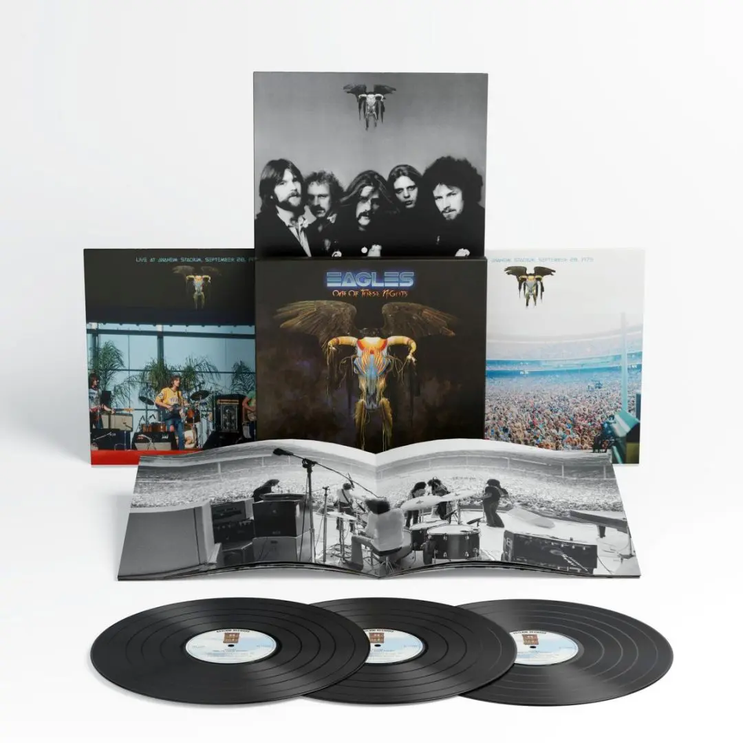 One Of These Nights (Deluxe Edition) sarà disponibile come set 3CD/Blu-ray con un nuovo mix dell’album originale, un concerto inedito del 1975 all’Anaheim Stadium con 16 brani e nuovi mix in Dolby Atmos e stereo ad alta risoluzione. Una versione 3LP, in uscita lo stesso giorno, includerà il nuovo mix dell’album e la registrazione completa del concerto. Le lacche sono state incise da Chris Bellman presso il Bernie Grundman Mastering. Prodotte da Don Henley, le edizioni CD e vinile includono un nuovo mix dell’album curato da Rob Jacobs.