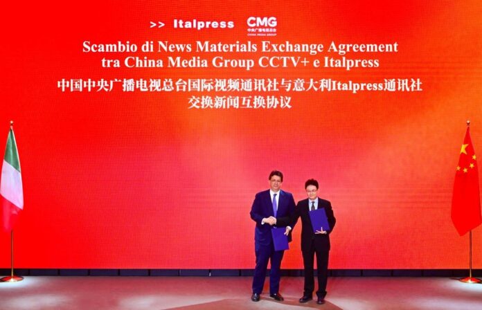 ROMA (ITALPRESS) – Sancito a Roma, con lo scambio dei contratti, l’accordo di partnership tra l’Agenzia di stampa Italpress e la CCTV+, che fa parte di CMG (China Media Group), il più importante gruppo editoriale cinese che comprende anche la televisione di Stato CCTV e l’agenzia di stampa video multimediale internazionale CCTV+.