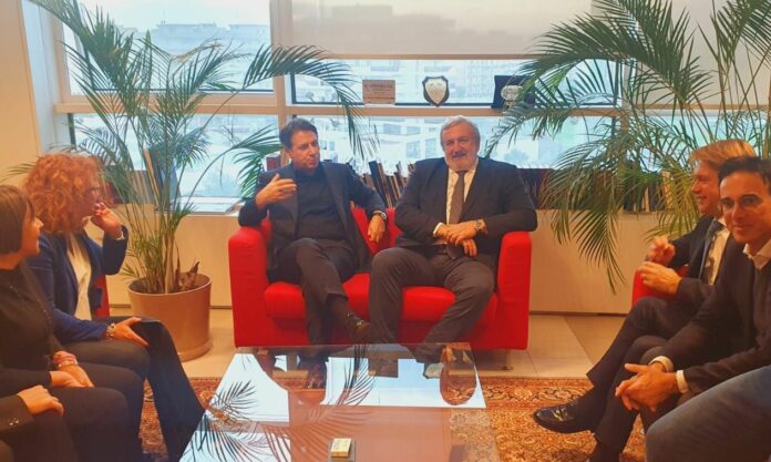 BARI (ITALPRESS) – Si è svolta oggi una “proficua giornata di lavoro” tra il Presidente della Regione Puglia Michele Emiliano e il Presidente del Movimento 5 Stelle Giuseppe Conte alla presenza del Vice Presidente Nazionale Mario Turco, del Coordinatore Regionale Leonardo Donno e del gruppo consiliare della Regione Puglia composto dal capogruppo Marco Galante, dal Vicepresidente del Consiglio Regionale Cristian Casili, dalla Consigliera delegata alla Cultura Grazia Di Bari e dall’assessore al welfare Rosa Barone.
