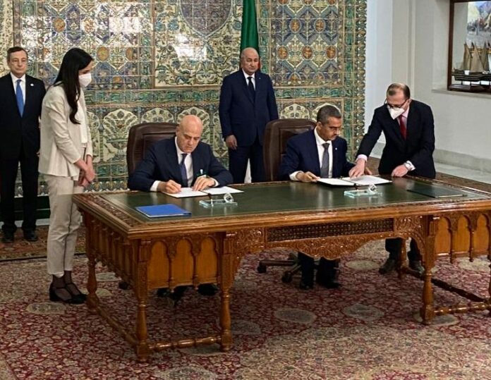 La firma è avvenuta nel corso della visita del Presidente del Consiglio dei Ministri Italiano, Mario Draghi, al Presidente della Repubblica Democratica Algerina, Abdelmajid Tebboune, a seguito della firma di una più ampia lettera di intenti per il rafforzamento della cooperazione in ambito energetico tra il Ministro degli Esteri algerino Ramtane Lamamra ed il Ministro degli Esteri italiano Luigi Di Maio, per conto dei rispettivi governi, alla presenza del Primo Ministro algerino, Aymen Benabderrahmane, del Ministro dell’Energia algerino Mohamed Arkab, e del Ministro italiano della Transizione Energetica.