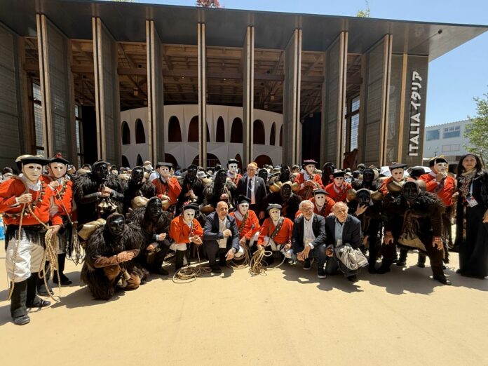 OSAKA (ITALPRESS) – Grandi maschere nere, campanacci sulla schiena, animali selvaggi, maschere in legno e figure allegoriche attorno ad una giovane donna che rappresenta il risveglio della natura. Le Maschere Antropologiche Italiane si sono esibite all’Expo di Osaka in due giorni di evento organizzati da UNPLI (Unione Nazionale Pro Loco d’Italia), in collaborazione con la Fondazione Pro Loco Italia e con il patrocinio del Ministero della Cultura e dell’ICPI (Istituto Centrale per il Patrimonio Immateriale). Due grandi eventi dedicati alla promozione e valorizzazione del patrimonio culturale immateriale italiano.