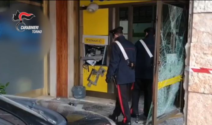 Il provvedimento arriva a conclusione delle indagini su un gruppo che avrebbe messo in atto una serie di furti ai danni di sportelli bancomat di istituti bancari e uffici postali, con l’impiego di ordigni esplosivi artigianali nelle province di Torino e Cuneo. Due dei destinatari del provvedimento erano gia’ in carcere dal 14 novembre scorso perche’ arrestati in flagranza per un assalto a un Postamat di Garessio (Cuneo). Per il terzo e’ scattato adesso l’obbligo di dimora. Al gruppo vengono contestati cinque furti ai danni sportelli automatici di Poste Italiane e istituti di credito, e nove furti di auto, poi impiegate per commettere gli assalti agli ATM.