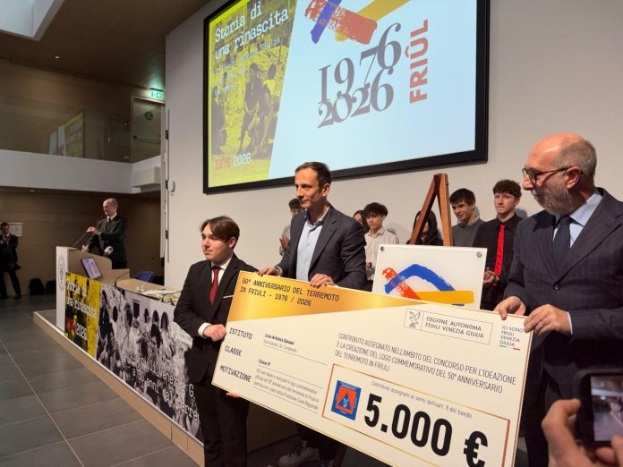 I saluti introduttivi sono stati portati dal rettore dell’Università di Udine, Angelo Montanari, con interventi del sindaco di Gemona e presidente dell’Associazione Comuni del Terremoto Roberto Revelant e del presidente del Consiglio regionale Mauro Bordin. Nel corso della cerimonia il governatore ha premiato il vincitore del concorso promosso dalla Protezione civile regionale e aperto alle classi quarte e quinte dei Licei artistici e Istituti tecnici ad indirizzo Grafica e Comunicazione della regione. Fedriga ha assegnato il riconoscimento a Davide Giroldo, della classe 5E (sezione Grafica) del Liceo Artistico ‘E. Galvani’ di Cordenons per aver creato il miglior logo commemorativo che rappresentasse la memoria dell’evento sismico, la resilienza della comunità, il percorso di rinascita e il legame con il territorio. Fedriga ha sottolineato che ‘è molto importante che le nuove generazioni siano protagoniste dell’anniversario del terremoto. Questo logo, oltre a dimostrare la grande capacità dei nostri ragazzi, rappresenta simbolicamente un ponte che attraversa cinquant’anni di storia della nostra terra, che non vuole far vivere un doveroso ricordo di quei momenti drammatici e della ricostruzione semplicemente come un doveroso ricordo del passato ma come una forte testimonianza nel presente. Lo spirito della ricostruzione deve continuare a impregnare le radici del nostro popolo, perché dimostra la vera forza di questa terra’.