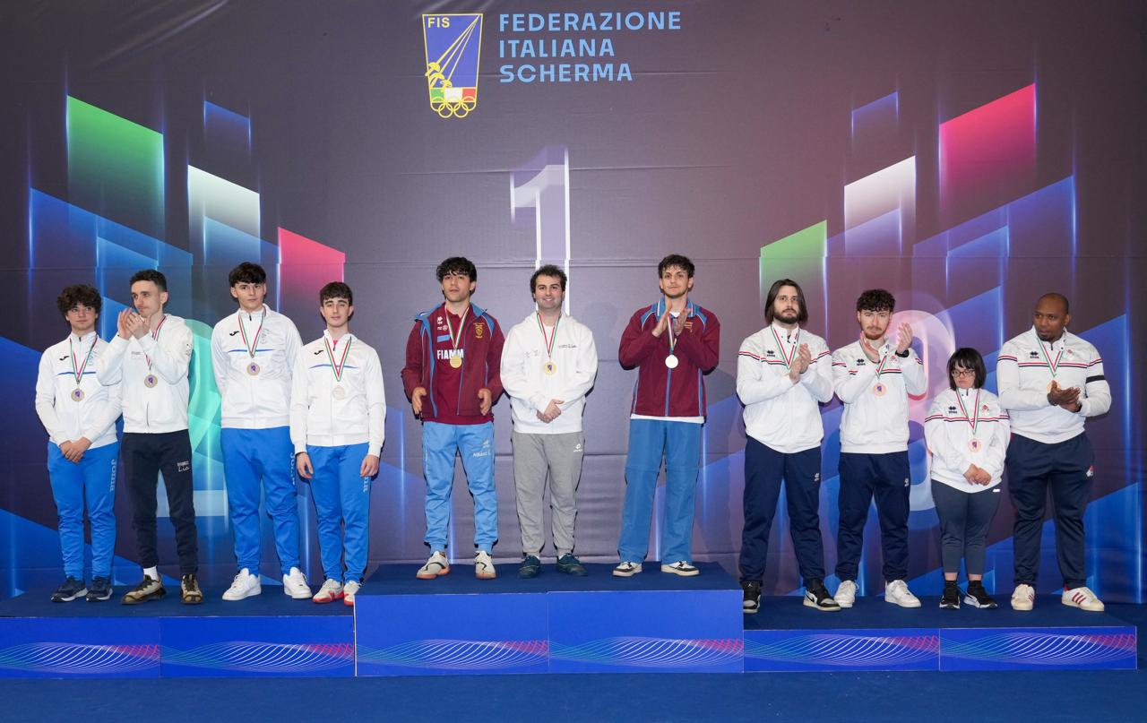 La vittoria è andata alle Fiamme Oro Roma: Daniele Fontana, Francesco Caudo e Marco Misiani hanno superato nell’ultimo atto il Circolo della Scherma Anzio, d’argento con Lorenzo Boschi, Giuseppe Iadaresta, Matteo Di Noia e Jacopo D’Antonio. Terzo gradino del podio per il Club Scherma Bari (Andres Carrillo Ayala, Giovanni De Marzo, Letizia Zaccaro e Filippo Scialanga) che nella finale per il bronzo ha battuto il Club Scherma Formia (Vincenzo Chiarolanza, Luigi Marciano, Francesco Troisi e Sinclair Chiassi). A seguire, in classifica, si sono piazzati il Frascati Scherma (Carlotta Pasqua, Stiven Bernardini, Francesco Retico e Mattia Proietti Savina), il Club Scherma Roma (Filippo Kiera Rouse, Alessio Pirrottina, Arianna Petella e Jacopo Baronci), la Nedo Nadi Salerno (Carlo Gallo, Antonio Lepore, Giovanni D’Arienzo, Vincenzo Vinciguerra), la Scherma Pistoia 1894 (Aleksandr Rizzi, Guido Romiti, Roberto Bartolini, Andrei Rizzi), il CUS Cassino (Francesco Maria Consales, Emiliano Bacci, Giovanni Maria Consales, Giuseppe Massimo), il Circolo della Spada Rimini (Gabriele Rotonda, Lorenzo Rulli, Travis Leardini), l’Accademia Scherma Lia-2 (Mattia Furfaro, Emanuele Parente, Davide Donatiello), il Pentamodena (Nadia Marastoni, Samuele Panzani, Federico Federzoni), l’Accademia Scherma Lia-1 (Elisabetta Pasquini, Susanna Gatti, Roberta Corsini), il Circolo Schermistico Sassarese (Francesca Furesi, Francesca Achenza, Emiliano Achenza, Mariangela Busi) e CUS Roma (Pierluigi Gallozzi, Paolo Quaggia, Filippo Manca, Filippo Disi).