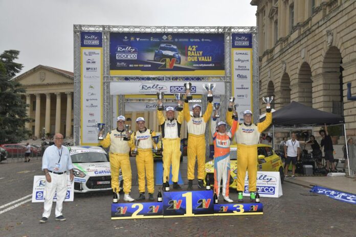 VERONA (ITALPRESS) – L’avevano cercata e studiata a lungo questa prima vittoria e alla fine, al Rally Due Valli, dopo le sfortune dei round passati, è arrivato il primo successo stagionale nella Suzuki Rally Cup di Giorgio Fichera ed Enzo Colombaro. L’esperto pilota siciliano ha costruito questo risultato prova per prova, senza commettere errori e rimanendo sempre un passo avanti agli altri, ed al termine del weekend tenendo conto del ritiro subito nella PS1 di Dallapiccola-Andrian, si è rilanciato nella corsa verso il trofeo monomarca, che dopo 4 round è più serrato che mai. Su prove così lunghe, tra le più impegnative per vetture ed equipaggi di tutta la stagione, con tagli netti, caldo asfissiante e ghiaia e polvere, al secondo posto sotto agli archi dell’Arena si è piazzato il senatore della Suzuki Rally Cup Roberto Pellè, in coppia con Luca Franceschini. Il pilota trentino ha lasciato tutti a bocca aperta con un tempo monstre nell’ultima speciale, una prestazione che gli è valsa insieme il sorpasso su Alessandro Forneris e la vetta del monomarca nipponico, di cui ora è nuovamente leader con 81 punti proprio grazie all’errore di Dallapiccola, dietro solamente di due punti. Fichera grazie alla vittoria placca entrambi a quota 71 lunghezze, promettendo scintille per i prossimi round in programma. Si è visto così sfilare di mano proprio all’ultimo soffio un 2° posto tanto difeso il giovane under25 Forneris navigato da Vincenzo Torricelli che, mentre era saldo dietro a Fichera, dopo aver vinto anche due prove, ha dato una leggiera toccata che lo ha fatto scivolare sul gradino più basso del podio. Una prestazione comunque da incorniciare per Forneris, che si conferma seconda forza dell’under25 e che si riavvicina anch’egli a Dallapiccola. Nell’assoluta del trofeo le prime 5 posizioni sono state occupate tutte da Suzuki Swift Sport Hybrid di classe Ra5h, ed il 4° posto lo ha ottenuto dopo una buona gara Davide Bertini in coppia con Luca Vignolo, dopo che aveva fatto la differenza sulla seconda parte del percorso. Quinto infine, a 16″3 da Bertini, uno dei tanti under al via, Samuele Santero affiancato da Nadir Bionaz. Nella classifica delle Racing Start, la categoria d’accesso al mondo rallystico, è invece arrivata la vittoria per Jean Claude Vallino, a bordo della Suzuki Baleno condivisa con Sandro Sanesi. Il giovane under25 era secondo in questa classifica fin quasi alla fine, ma proprio sull’ultima PS i leader Varesco-Benedet si sono ritirati per una banale noia meccanica, lasciando campo libero a Vallino per gustarsi un’altra grande serata di festa. Secondo è passato così nella splendida Piazza Bra, con il sottofondo dell’opera lirica, il gentleman driver Marco Soliani, navigato da Domenico Corradi, che ha chiuso la sua gara con un buon vantaggio sull’equipaggio della famiglia Vitali. Il giovane Stefano navigato da Maurizio si è aggiudicato il podio fra le Boosterjet, con la classifica che ora lo vede al 5° posto dietro proprio a Soliani, mentre Vallino vola a 56 punti.