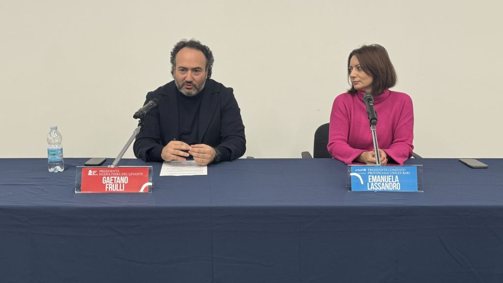 BARI (ITALPRESS) – Un evento a Capodanno per consolidare il rapporto tra Nuova Fiera del Levante e Unicef. Il prossimo 1 gennaio al teatro Petruzzelli di Bari, con “Mi ritorni in mente” (Mogol che racconterà Lucio Battisti), si terrà il primo spettacolo benefico organizzato dalla società partecipata da Camera di Commercio di Bari e Bologna Fiere e l’agenzia umanitaria, occasione per rinnovare un legame nato alla vigilia della scorsa Campionaria Generale Internazionale. L’evento è stato presentato oggi dal presidente di Nuova Fiera del Levante Gaetano Frulli e dalla presidente del comitato provinciale barese di Unicef Emanuela Lassandro.