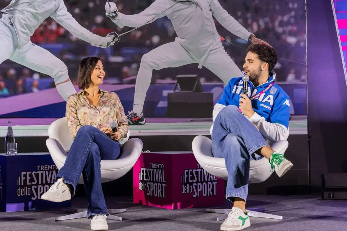 TRENTO (ITALPRESS) – Dal Gran Premio Giovanissimi “Renzo Nostini” Trofeo Kinder Joy of Moving, mai vinto, alla doppia medaglia olimpica di Parigi 2024. Filippo Macchi è stato autentico mattatore, nel sabato del Festival dello Sport di Trento, dell’incontro intitolato “La gioia di muoversi”. Il fiorettista azzurro ha condiviso un palco di super campioni, di cui è stata moderatrice d’eccezione Rachele Sangiuliano, con la tennista Flavia Pennetta, vincitrice degli US Open 2015, e l’olimpionico della ginnastica Yuri Chechi, il “signore degli anelli”, in un talk speciale che ha celebrato il ventennale di Kinder Joy of Moving, progetto di responsabilità sociale dell’azienda Ferrero che da oltre quindici anni affianca la Federazione Italiana Scherma e che ha portato sul campo, in pista, in pedana e in regata oltre 60 milioni di bambini nel mondo. Solo nell’ultimo anno, in Italia, gli eventi sono stati oltre mille, con 600mila ragazzini coinvolti. Alla presenza del presidente e amministratore delegato di Ferrero Commerciale Italia, Fabrizio Gavelli, e di Valentina Martini, Head of Corporate Development di Save the Children, il 24enne schermidore toscano delle Fiamme Oro si è raccontato a tutto campo.
