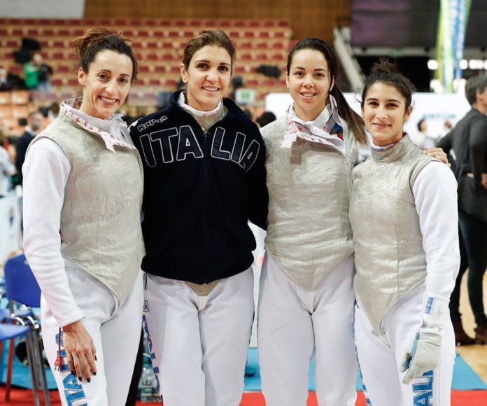 L’Italia conclude al terzo posto la gara di Katowice del circuito di Coppa del Mondo di fioretto femminile e stacca il pass per i Giochi Olimpici di Tokyo2020. La squadra azzurra festeggia sulle pedane polacche la matematica certezza della qualificazione ai Giochi giapponesi, dove il Dream Team azzurro potrà difendere il titolo olimpico conquistato a Londra2012 e che a Rio2016 non fu in palio per l’oramai superata rotazione delle specialità nel programma olimpico. La conquista del pass per la gara a squadre a Tokyo2020, permetterà all’Italia di avere tre atlete nel quadro della gara olimpica individuale, aumentando così il contingente di fiorettiste rispetto all’edizione brasiliana del 2016. Il quartetto azzurro composto da Elisa Di Francisca, Arianna Errigo, Alice Volpi e Francesca Palumbo sale sul terzo gradino del podio grazie al netto 45-18 con cui si è imposto sugli Stati Uniti nella finale valida per la terza piazza. In precedenza le azzurre, che avevano iniziato agli ottavi di finale con la vittoria contro Taipei per 45-18 a cui aveva fatto seguito la vittoria ai quarti contro l’Ungheria col punteggio di 45-36, erano state fermate dalla stoccata del 42-41 messa a segno nel minuto supplementare dalla Francia nell’assalto di semifinale.